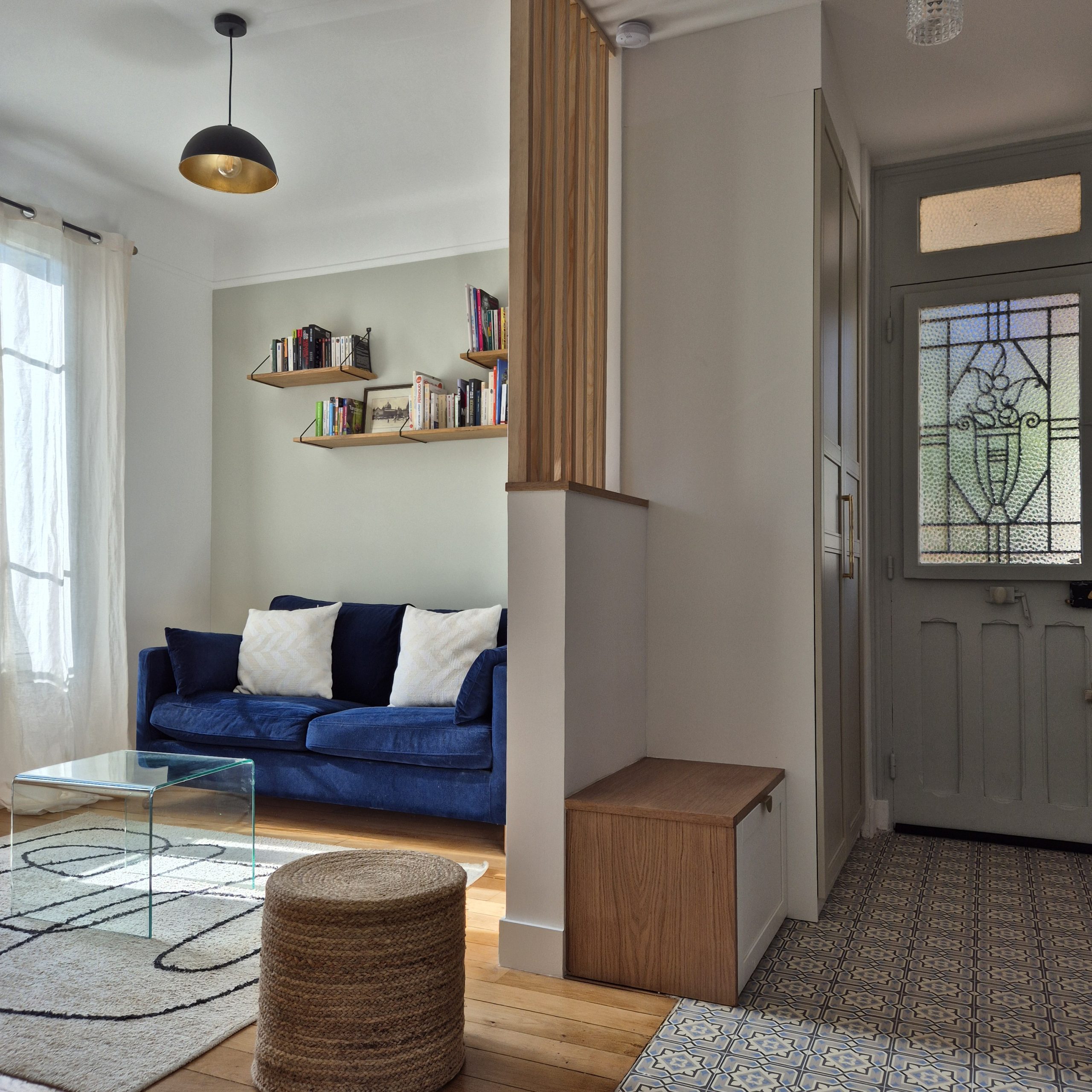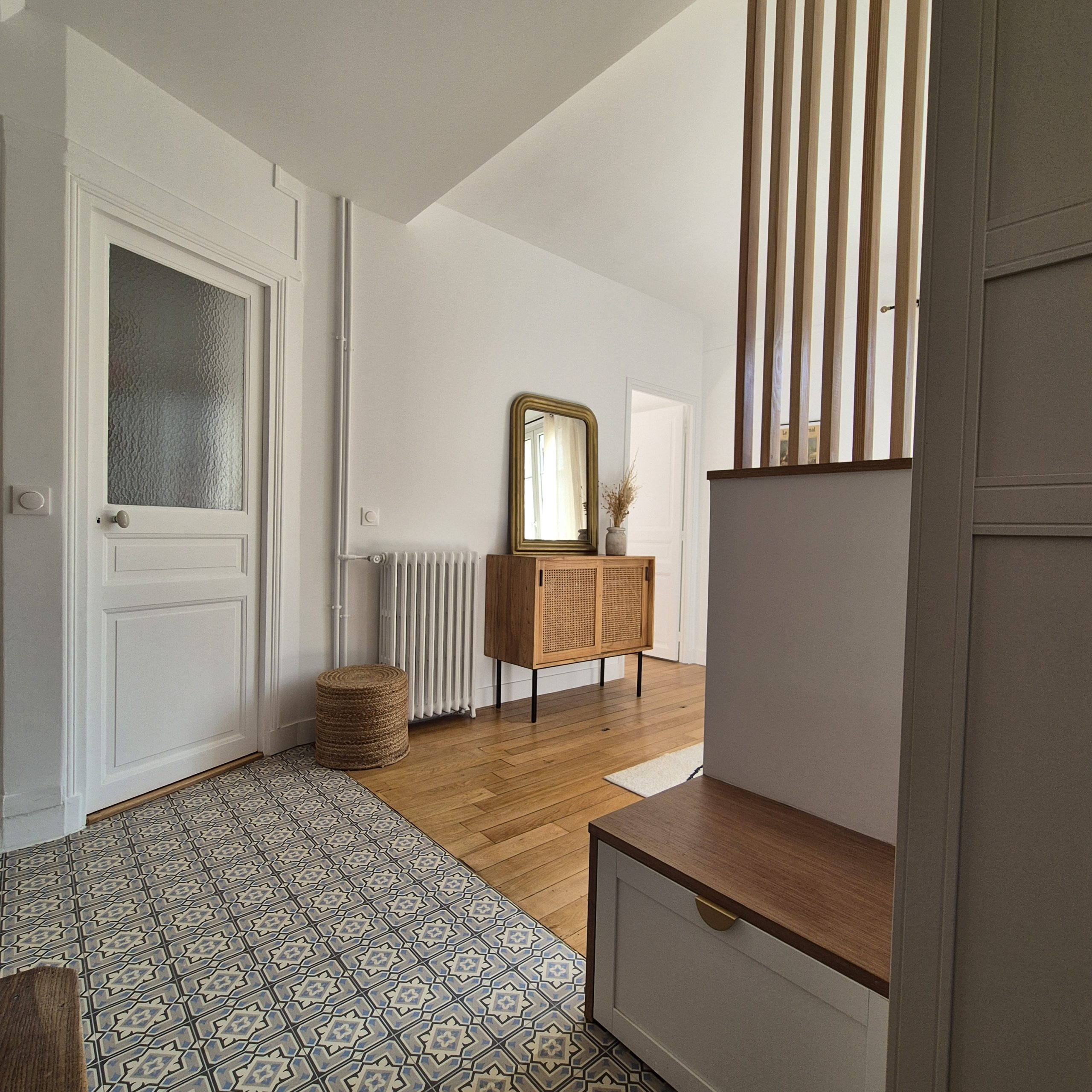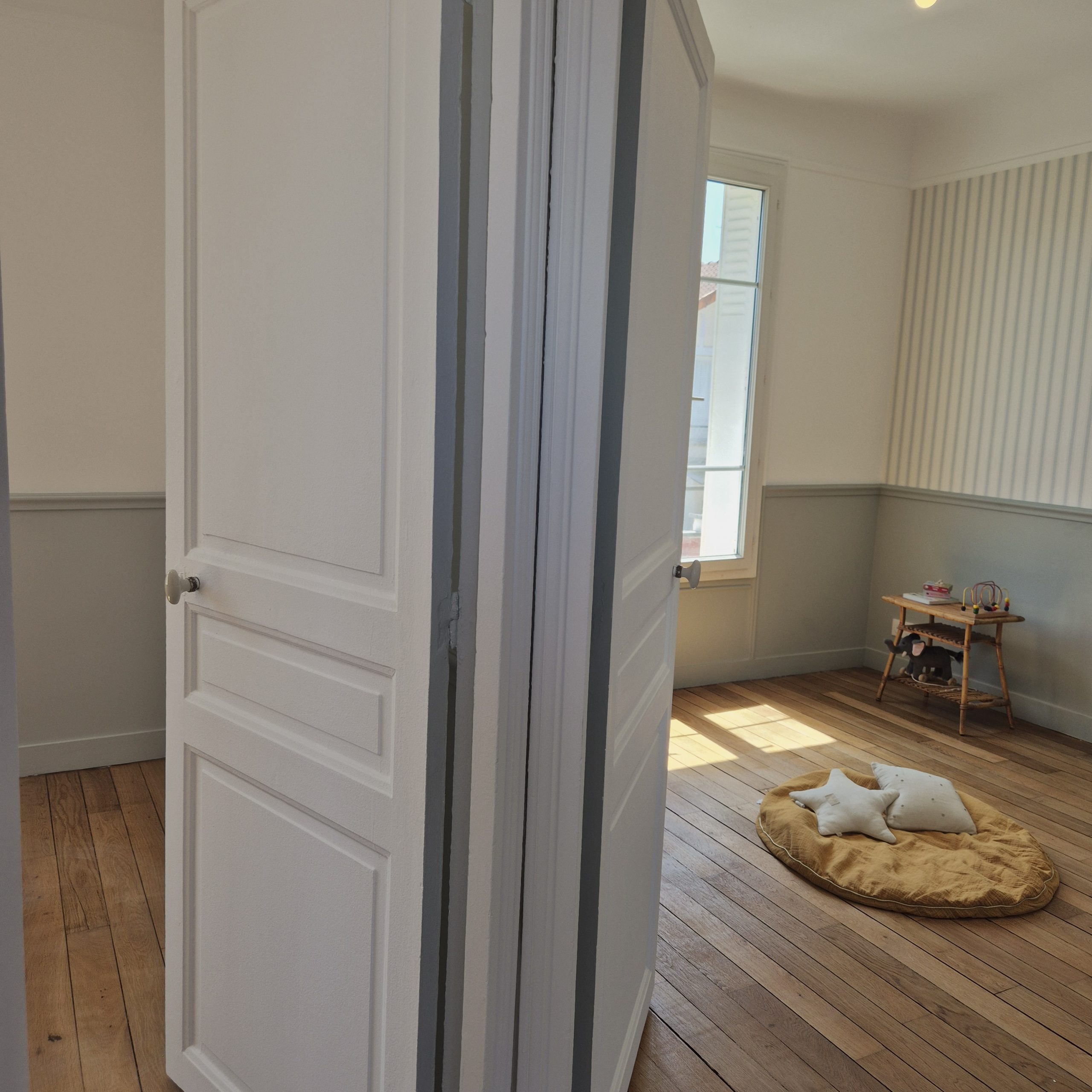 Entre héritage et modernité, cette maison se transforme en cocon familial inspirant. Le parquet d’époque restauré, les menuiseries sur-mesure et les détails décoratifs redonnent à la maison son élégance tout en l’adaptant aux usages d’aujourd’hui.