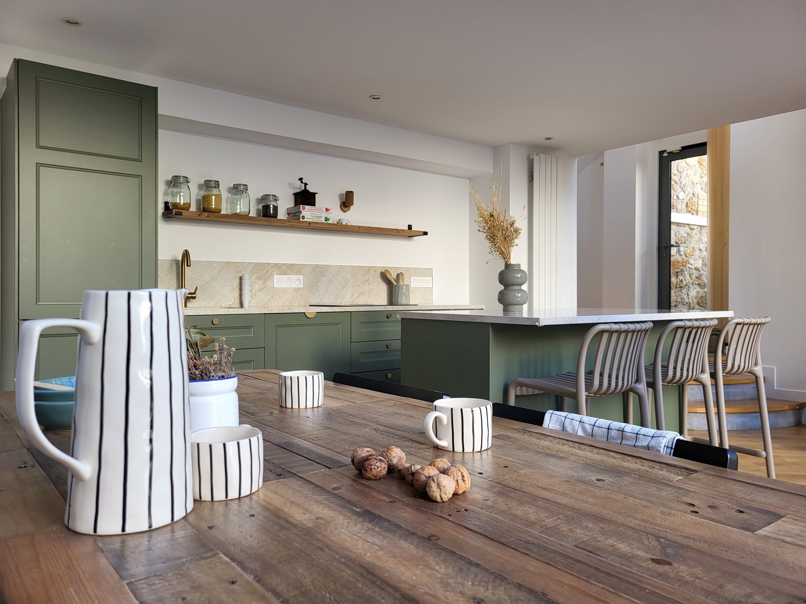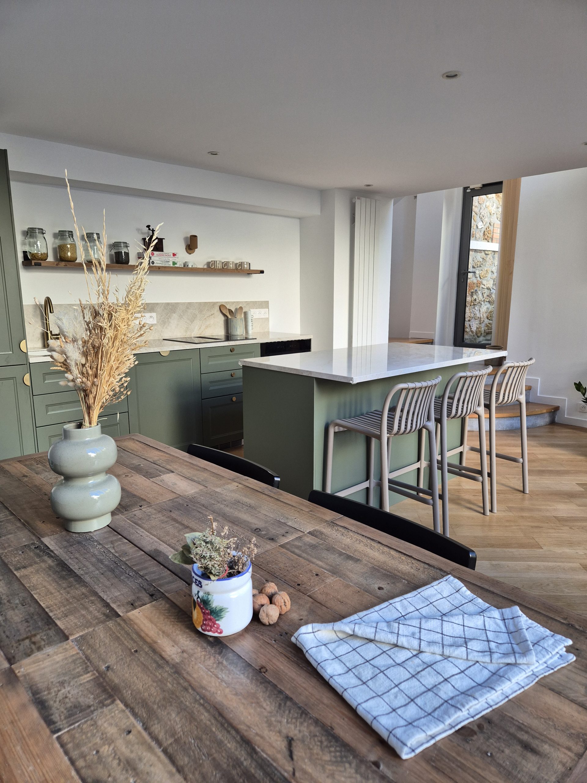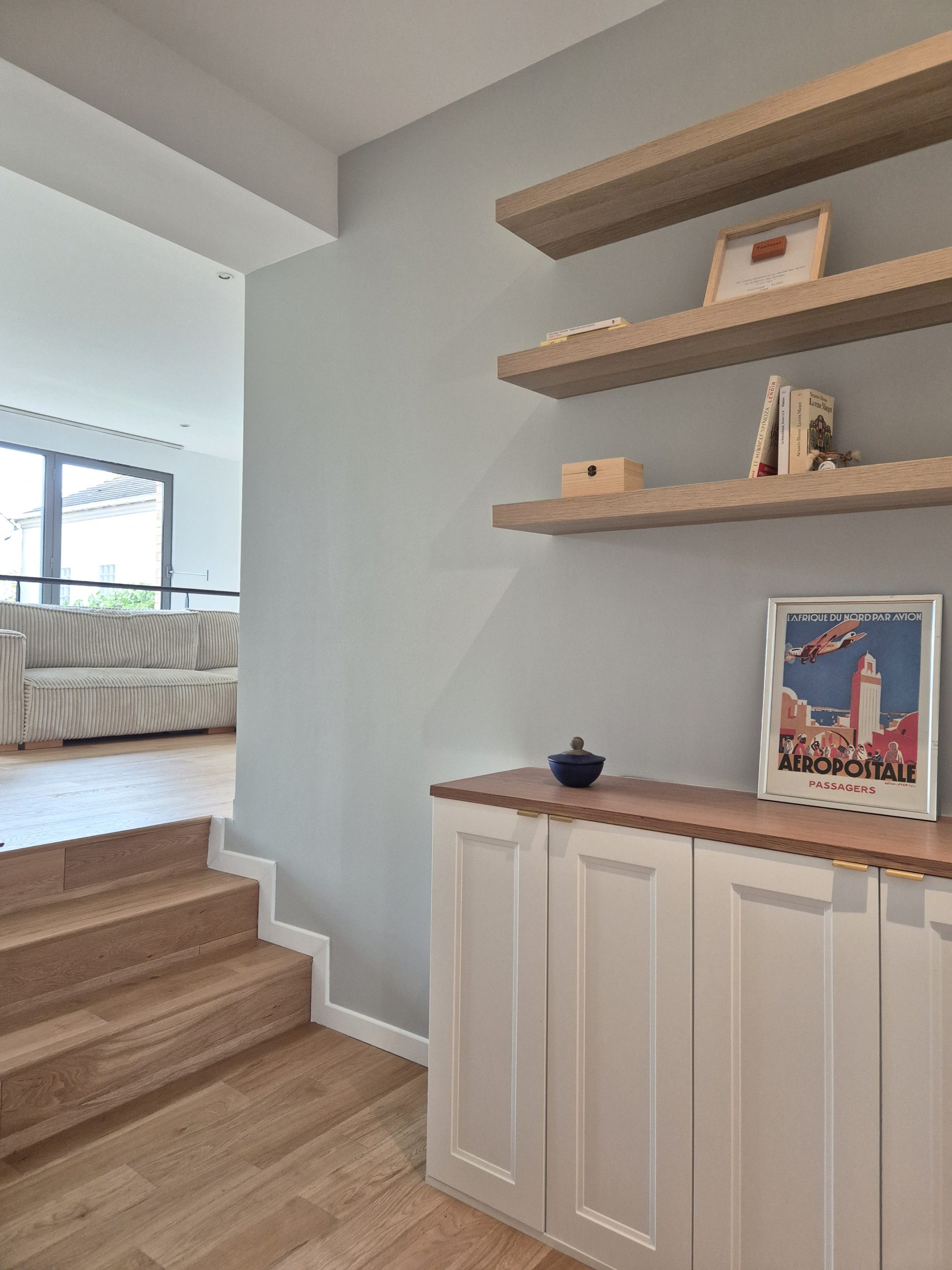 Entre héritage et modernité, cette maison se transforme en cocon familial inspirant. Le parquet d’époque restauré, les menuiseries sur-mesure et les détails décoratifs redonnent à la maison son élégance tout en l’adaptant aux usages d’aujourd’hui.
