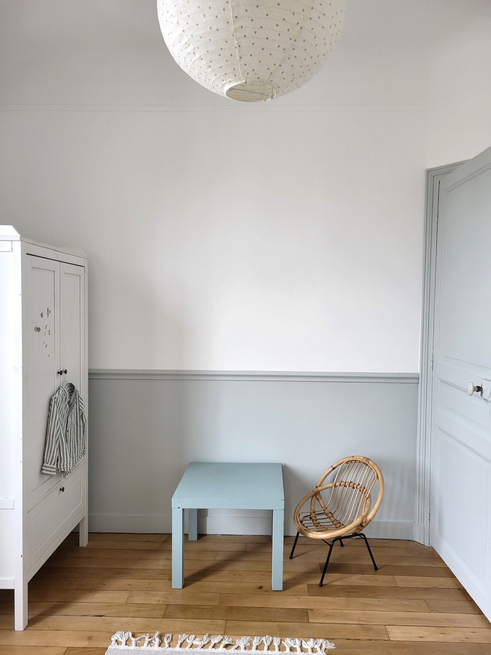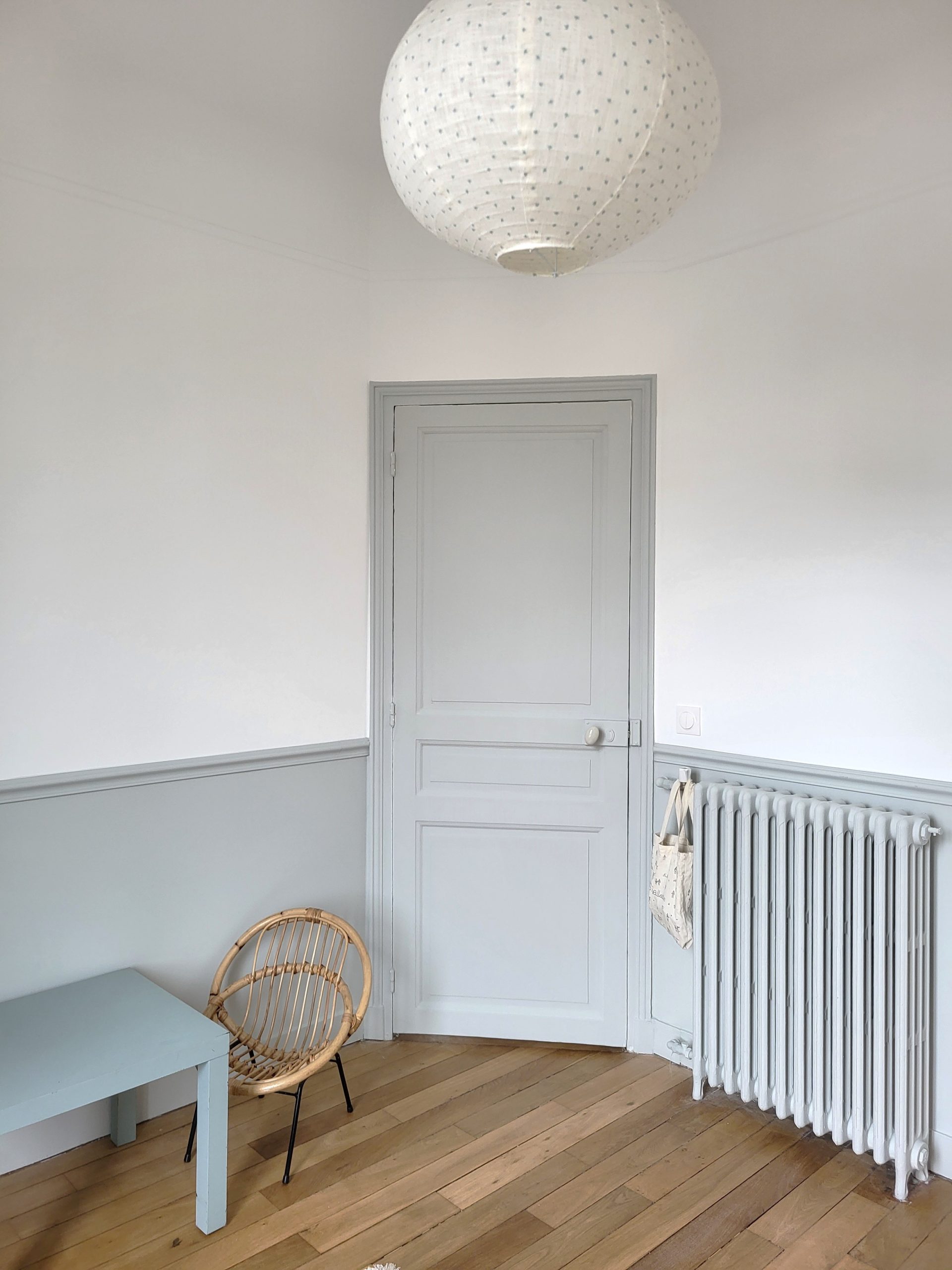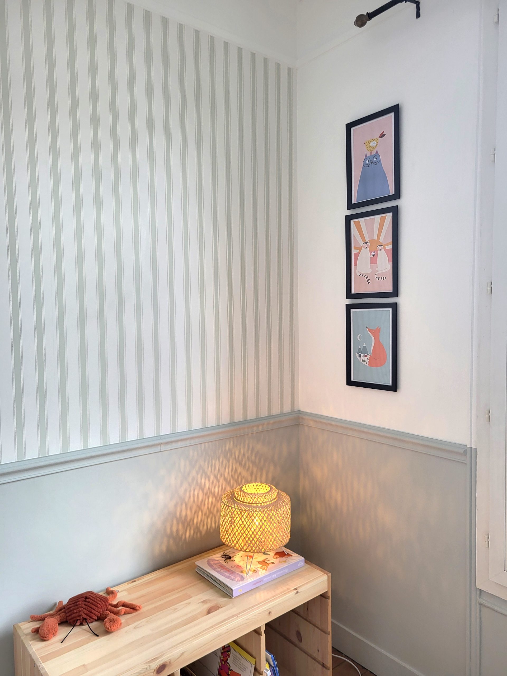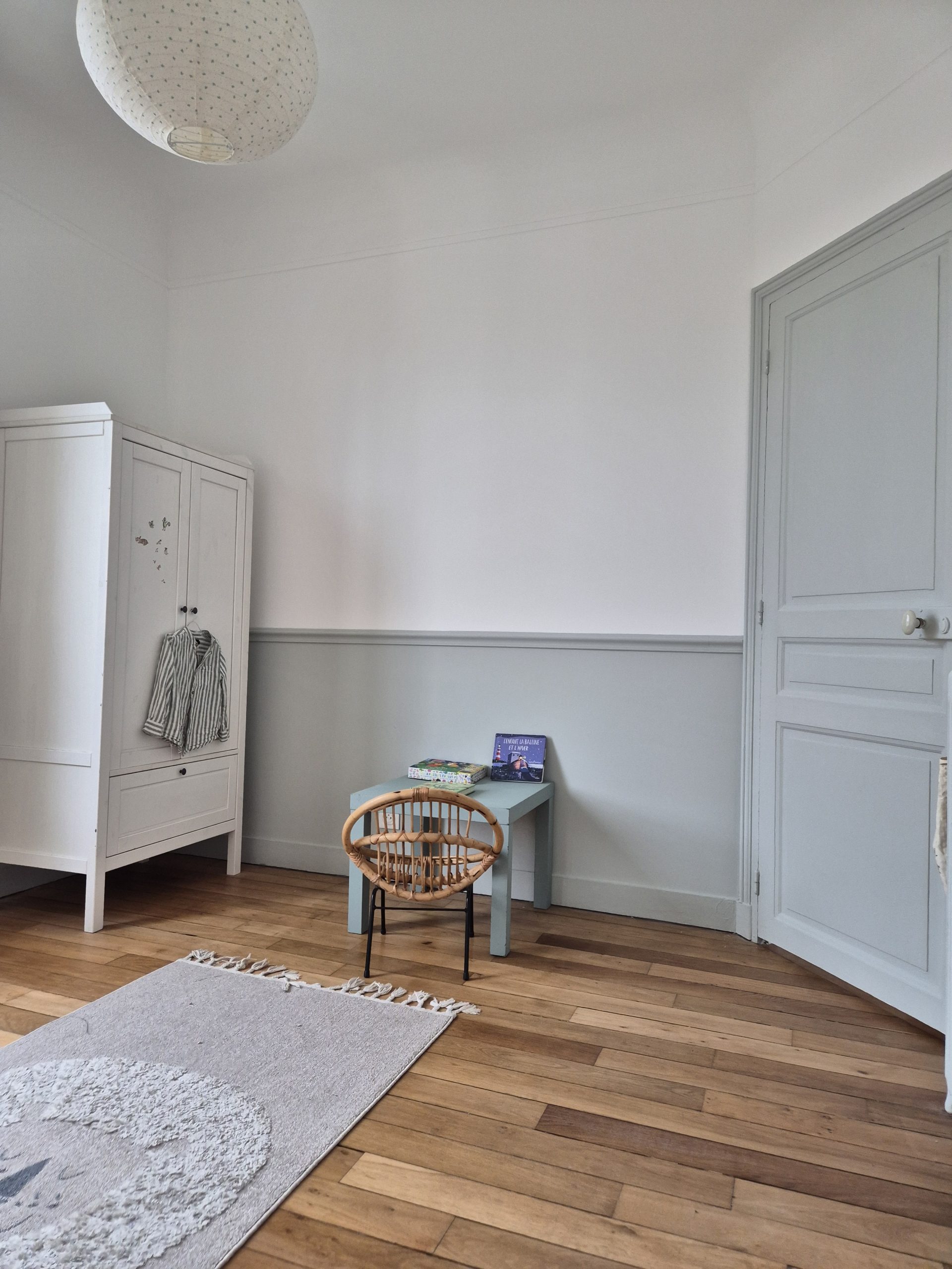 Le choix des papiers peints et les couleurs Farrow & Ball tissent un fil conducteur doux et enveloppant : palette sourde, bleus, verts, beiges intemporels… un véritable hommage au style « British cosy », sublimant le charme originel de cette demeure.